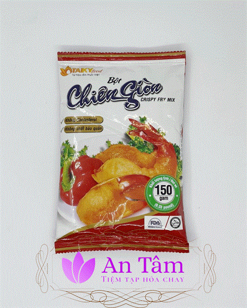Hướng dẫn sử dụng: Nguyên liệu làm sạch để ráo. Bột chiên giòn 150gr hòa khoảng 160ml nước. Nhúng nguyên liệu qua bột pha sẵn. Để lửa nhỏ cho chảo dầu nóng dần lên, thả nguyên liệu vào chiên vàng