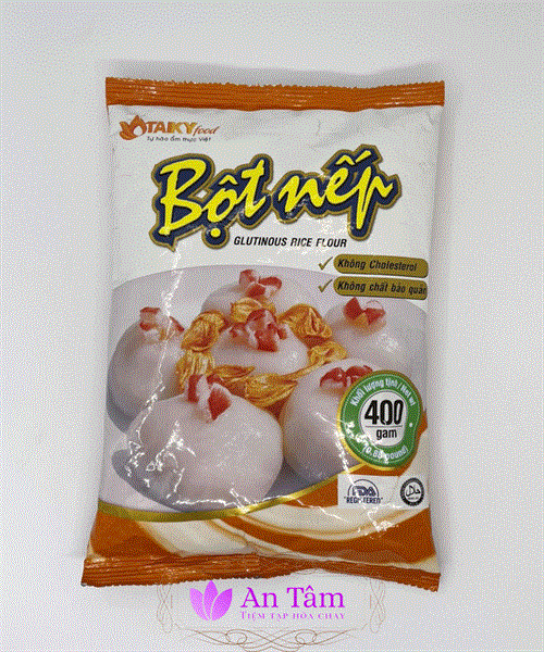 Hướng dẫn sử dụng: Bột nếp đặc tính dẻo, dai và có màu trắng. Dùng trong chế biến thức ăn như: bánh ít trần, chè trôi nước, bánh dày...