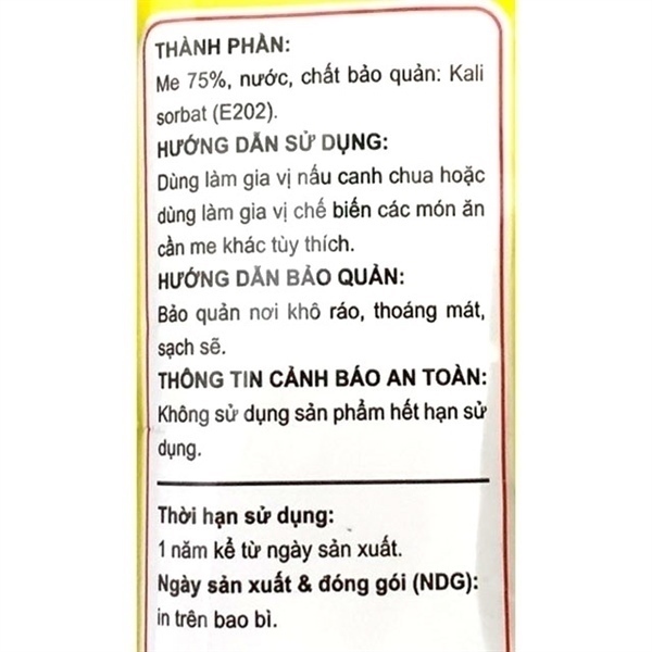 Hướng dẫn sử dụng : Dùng làm gia vị nấu canh chua, dùng làm gia vị chế biến các món ăn cần me khác tùy thích