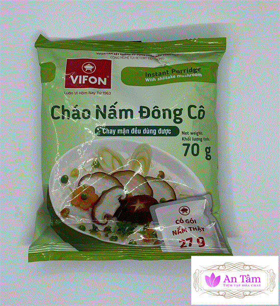 Hướng dẫn sử dụng: Cho phôi cháo và gói gia vị vào tô. Chế nước sôi 350ml vừa đủ, trộn đều. Đậy kín tô trong 3 phút. Mở nắp cho gói nấm vào, trộn đều và thưởng thức